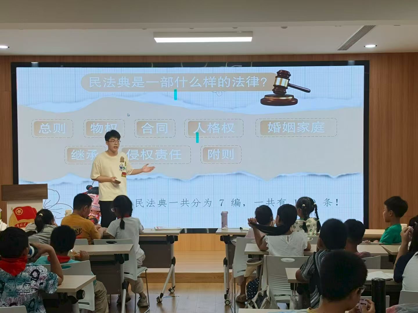 实践营里,法治教育摆脱枯燥,变得生动有趣。“拒绝校园霸凌”主题课上,大学生志愿者们精心设计模拟法庭环节,孩子们头戴法官帽、身披律师袍,扮演不同角色。面对校园中可能出现的霸凌场景,“小法官”公正裁决,“小律师”据理力争,通过激烈的辩论,孩子们深入理解《未成年人保护法》中关于校园安全、人身权益的条款,明白如何用法律武器保护自己。