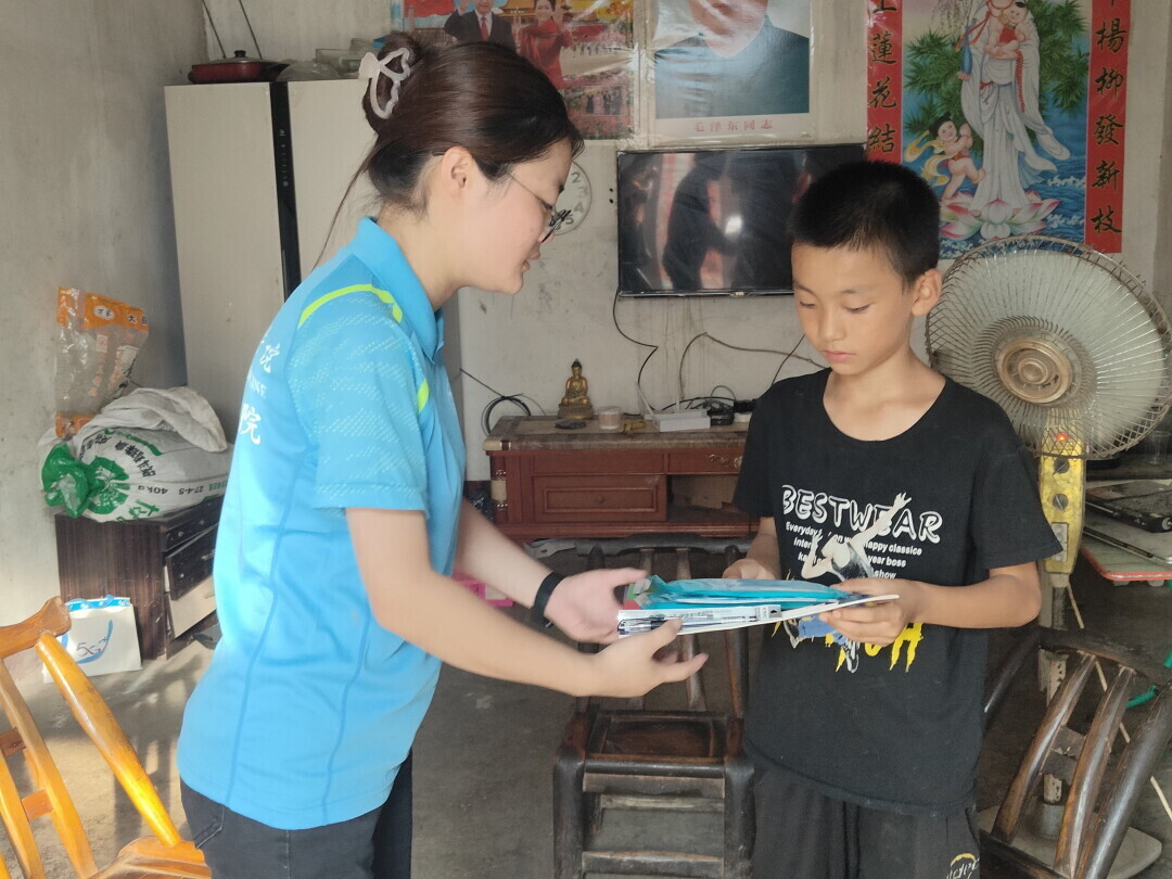 中国青年网十堰7月23日电 (通讯员 陈子珺)值此建团百年之际,为下沉基层,察民情,解民忧,暖民心,7月22日,湖北医药学院星火筑梦社会实践队深入十堰市丹江口市六里坪镇蒿口村留守儿童家庭集中走访慰问。此外,还开展了“把爱带回家·温暖送万家”关爱儿童特别行动,实施了走访慰问进万家、安全教育进万家、关爱帮扶进万家系列活动。在走访慰问中志愿者们详细询问留守儿童家庭状况及需求,询问留守儿童在家生活和在校学习情况,了解留守儿童遇到的问题和困难,并积极鼓励留守儿童们努力学习、积极向上、勇敢乐观。志愿者们还为留守儿童送上图画本、笔记本、中性笔防疫用品等慰问物资。