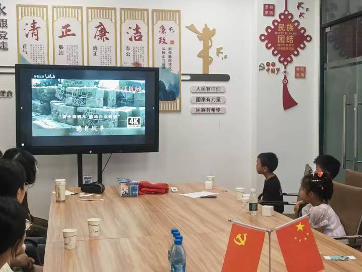 活动最后,实践团成员与孩子们一同观影,了解近代禁毒第一人——林则徐先生“虎门销烟”的英雄事迹。禁毒英雄的事迹和精神让孩子们认识到个人价值观的正确塑造对于社会发展和国家命运的重要作用。观影之余,实践团成员展开了对禁毒英雄事迹的详细介绍,通过解析英雄们的可贵品质与精神,使孩子们认识到禁毒是每个公民的共同责任。