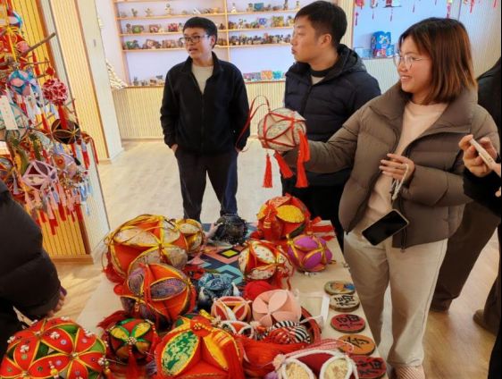 展馆内,暖黄的灯光柔和地洒在每一个展台上,团扇、绣球、陶具等手工艺品琳琅满目,整齐排列。团扇扇面上描绘着壮族特有的花纹,色彩明丽热烈;绣球穗子轻轻垂落,针脚虽略显青涩,却一丝不苟;陶具造型朴拙,隐约可见手指捏塑时留下的痕迹。每一件作品虽不尽完美,却都被用心地摆放在最显眼的位置,无声却有力地诉说着学生们的心血与专注。