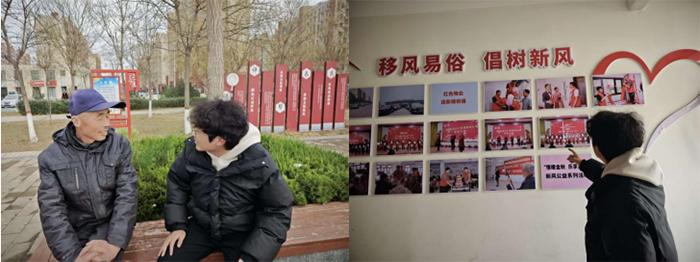 交流过程中,老人们热情分享在桃园活动中心的快乐时光,对街道打造的乒乓球、棋牌等活动场所赞不绝口,纷纷讲述近年来桃园街道在居住环境、民生服务、文化建设等方面的巨大变化,言语间满是对美好生活的满足与对社区工作的认可。队员们认真聆听、用心记录,在朴实真挚的话语中感受家乡发展带来的民生福祉,在温暖互动中加深对基层民情的理解。