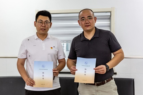 图为张仕杰老师与负责人签署协议书,中国青年网通讯员 李勇 摄