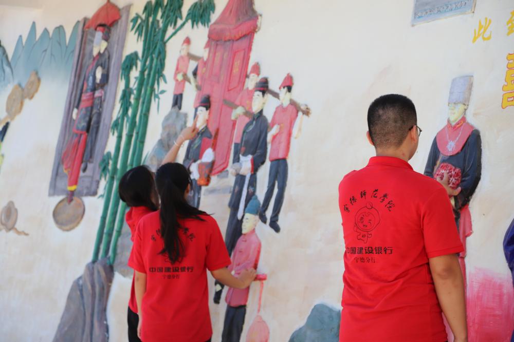 7月11日,实践队成员在仙岩村参观畲族壁画。仙岩村的壁画其色彩以“凤凰五色”——“红、金、墨、绿、蓝”为主色调,涵盖了狩猎、农耕、畲药晾晒、婚庆、畲歌对唱、起洪楼等场景,刻画出畲族人民的生活百态与习俗传承。生动地反映出畲族人民对自然、生活和信仰的深刻感悟。尤其值得一提的是,壁画中凤凰的形象,它不仅是美的象征,更承载着畲族人民的信仰和价值观。实践队成员在壁画前驻足观赏,深深感受到了畲族文化的力量与智慧。他们深受启发,经过反复研讨与推敲,精心设计了相关的畲族文创作品,期望借助现代传播的新形式,让更多的人了解和领略畲族文化的魅力。