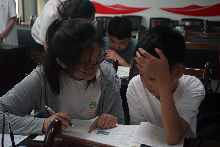 学业辅导也是活动的重要环节。实践团成员分组为孩子们答疑解惑,针对数学难题、作文构思、英语单词记忆等进行耐心指导,通过启发式提问引导独立思考,助力解决学习难题,让课堂兼具知识温度。