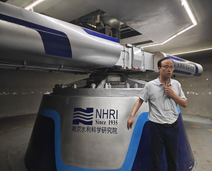 南京水利科学研究院中,研究院开放通航试验厅与土工离心机试验厅等重要科研场所,安排资深科研人员为实践团讲解。在通航试验厅,科研人员围绕三峡大坝模型、水利驱动式垂直升船机模型,深入剖析泄洪效能优化、流体控制原理等知识,并引导实践团思考其与污水处理技术的关联,拓宽成员们的跨领域思维。在土工离心机试验厅,细致阐述模拟高重力场研究土层特性的技术原理,以及在污染物迁移规律研究中的应用,毫无保留地分享科研成果与经验。