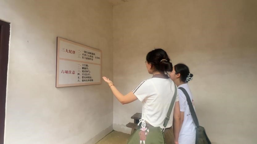 实践团成员们在实践中遇见一位特殊的受访者——她曾是井冈山革命博物馆的讲解员。她谈起这片土地上的烽火岁月,眼睛闪烁着如当年站在展柜前一般清澈而炽热的光芒。那些浸透着血与火的故事、那些镌刻着信仰与牺牲的名字,早已融入她生命的脉络。“今天我仔细听了讲解员的讲解,讲解词和我们那时候相比,有很多创新之处。讲解词的变迁,也是时代发展的缩影。”分别时,她拍拍团队成员的肩膀,分享参观感受,对我辈青年寄予深情嘱托。