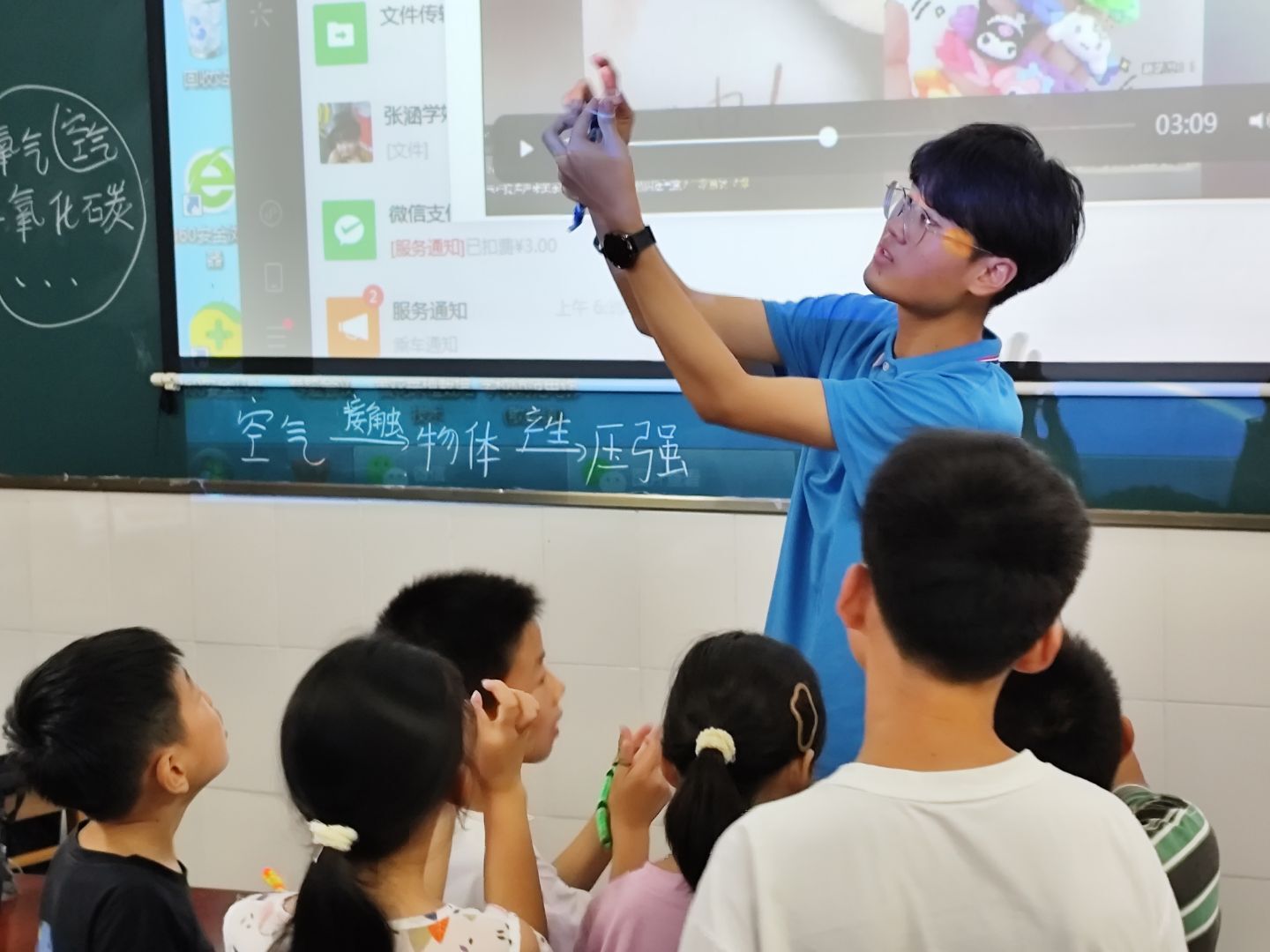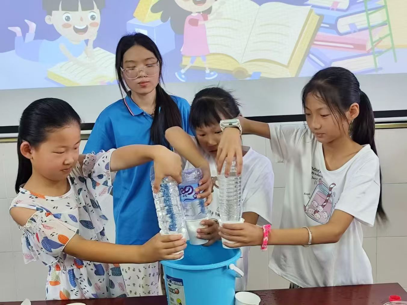 科学探索:探寻世界奇妙之处,领悟科学无尽奥秘。好奇心是最好的老师。志愿者们巧妙利用生活中随处可见的物品,上演一幕幕科学“魔术”:悬空的乒乓球仿佛被无形的手托举,流不下来的水在杯中筑起神奇的屏障。在惊叹声中,志愿者们深入浅出地讲解背后的科学原理,让抽象的知识变得触手可及。天文的浩瀚、地理的奇妙、生物的灵动,一系列科普知识讲座如同一把把钥匙,打开了孩子们探索世界的大门,科学思维的种子在好奇心的滋养下慢慢萌发。这些充满趣味的科学实验,不但极大地提升了同学们的动手实践能力,还助力他们成功解密了生活中的科学现象,为大家带来了无尽的欢乐。