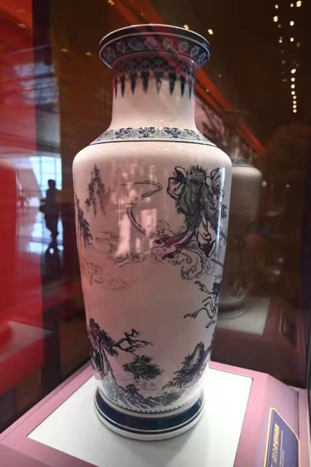 山东理工大学机械工程学院的齐稷瓷色实践团在淄博陶瓷琉璃博物馆的参观学习中,皆叹服于瓷器的细腻与其制作工艺的精湛,青花三打白骨精棒槌瓶是团员们影响深刻的作品之一。