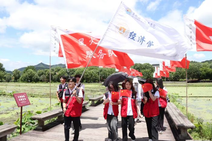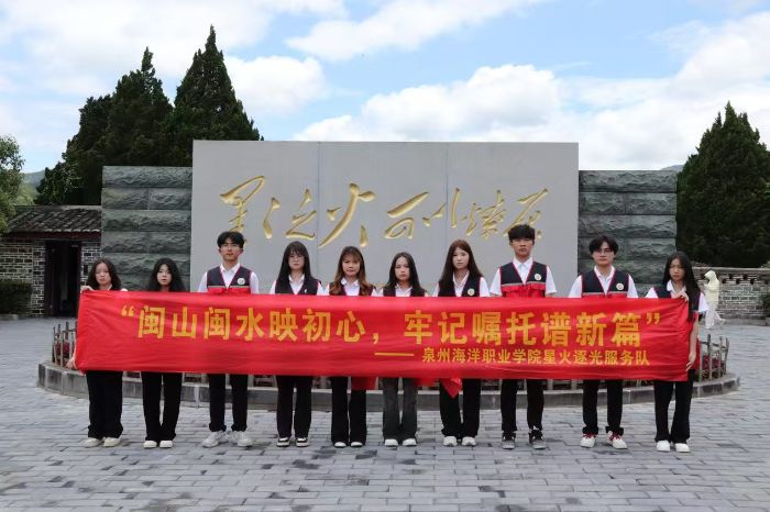 古田寻根・才溪问道:泉海“星火”三下乡,青春聚力承红脉,实干担当赋新篇为深入贯彻落实习近平总书记关于青年工作的重要思想和在福建考察时的重要讲话精神,传承红色基因,引导青年学子厚植家国情怀,泉州海洋职业学院组织的“星火逐光服务队”于2025年7月5日起开展“沿着习近平总书记的足迹”专项“三下乡”活动。此次活动以“青春为中国式现代化挺膺担当”为指引,聚焦古田会议会址与才溪红色革命圣地,通过实地研学、专题研讨、实践体验等多元形式,让学生在沉浸式学习中感悟思想伟力,体悟伟大变革,用实际行动弘扬爱国主义精神。