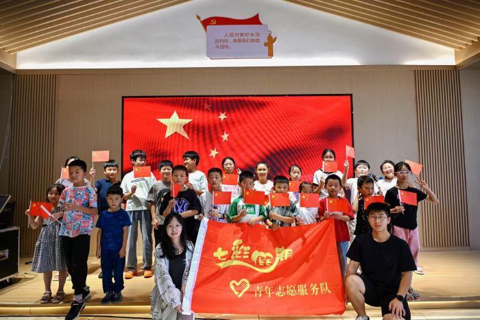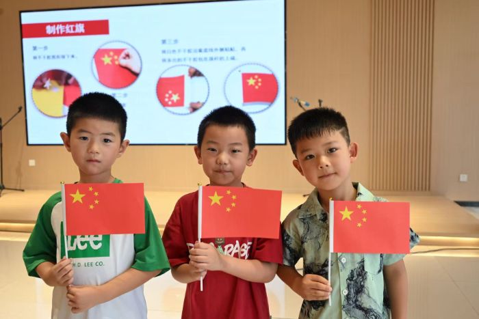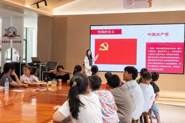 2025年7月20日,在汤店村实践中心的支教课堂上,河海大学“追光”支教团用一堂以“祖国旗帜在我心”为主题的思政课,为小学生们开启了一场生动的红色教育之旅,通过“认知+实践”的特色课堂,让山村孩子读懂旗帜里的中国故事,在孩子们心中播撒下爱国的种子。