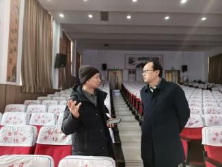 | 团队成员在安阳一中报告厅听取宣讲建议 | 团队成员与高中王老师合影并沟通 |