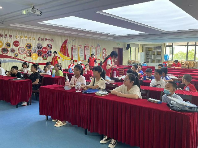 图为实践队员带领学生进行有关消防安全的游戏——“你划我猜”。 潘薇 摄