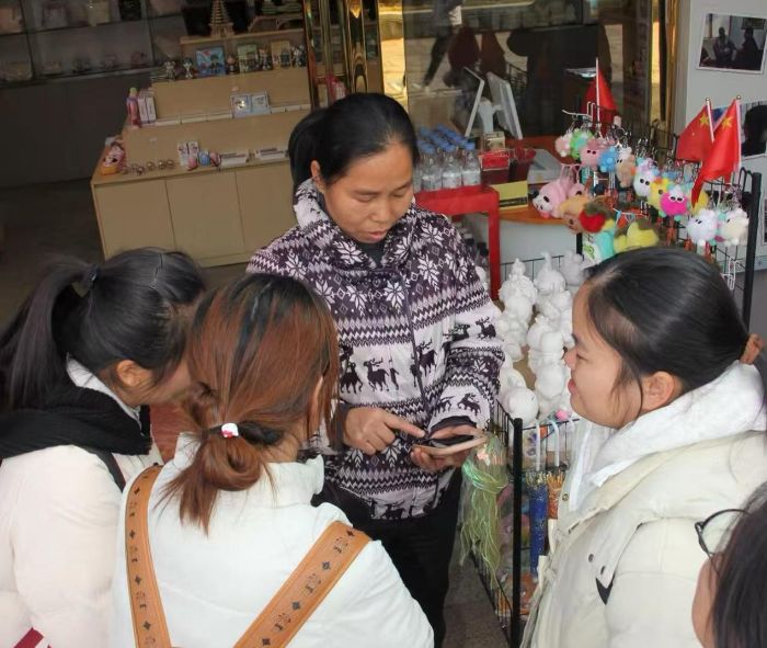 图为团队成员与文创店中实地调研 江陈雪冰 供图