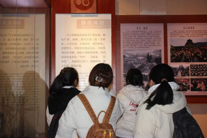 图为团队成员在侗绣博物馆参观侗锦文化 陈慧雯 供图