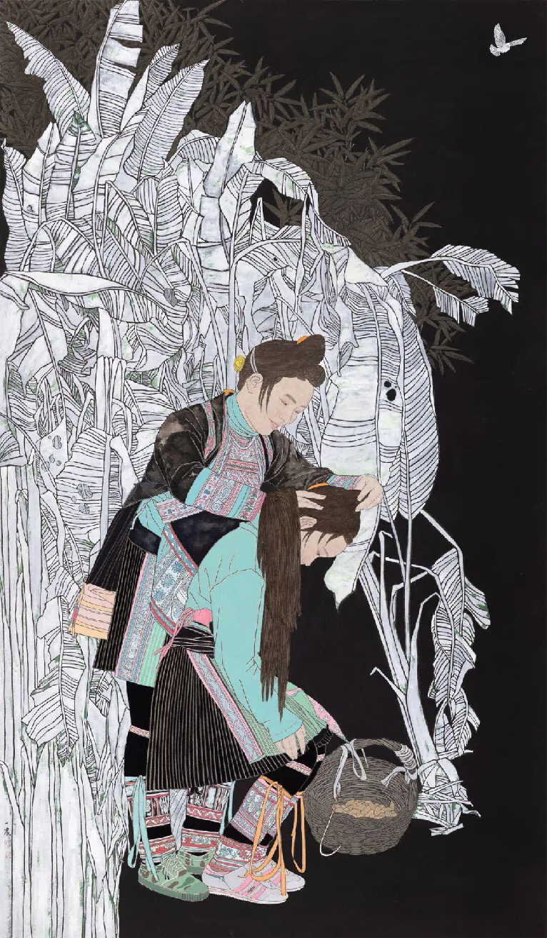 从艺术创作看,这是传统人物画与禅意的深度融合。周一弄老师借传统工笔与写意的技法,勾勒罗汉轮廓、渲染衣袂纹理,让古韵流淌 。每一笔的细腻,每一色的斟酌,都是匠心。这不仅是艺术创作,更是对传统文化的传承与创新,用古老的罗汉题材,讲当下对宁静、对智慧追求的故事,让传统艺术在现代语境里,焕发出抚慰心灵的力量 。