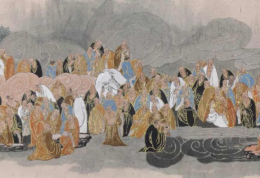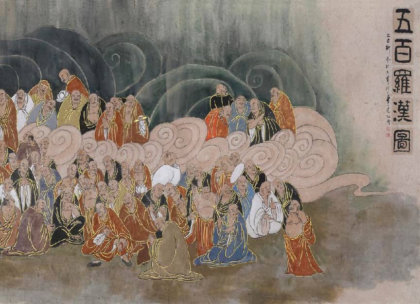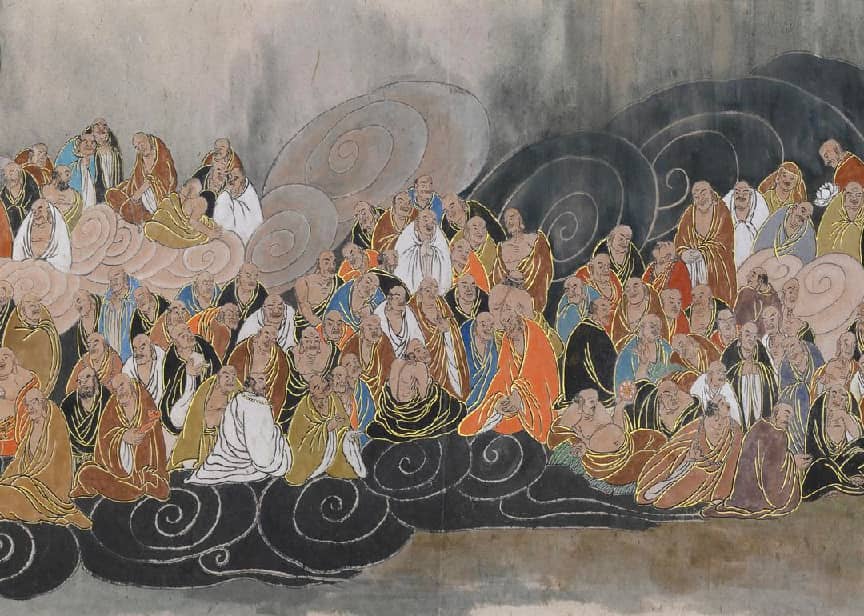 周一农老师创作这些罗汉,是修行者的缩影。他们姿态不同,寓意着修行路上多样的心境与境界。有的罗汉独处静思,象征着在孤独中与自我对话,探寻内心真理;有的相互交流,代表着佛法传承里的智慧碰撞 。老师以笔为媒,把对禅修、对人生的思考,融入每一尊罗汉的神态动作中,让观者透过画面,触摸到修行的温度——不是遥不可及的高深,而是贴近心灵、关乎成长的求索。