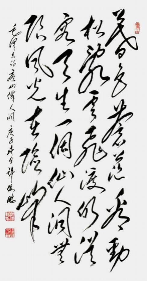颜真卿书论有言:草书兴起于汉代。杜度、崔瑗写得相当精妙。到了张伯英,尤其擅长草书创作的美伦美幻。后有书论言怀素张旭草书“以癫继狂,谁曰不可”。再到近代以林散之当为草圣。当代草书圣贤,则由许体草书创建者许俊鹏为领衔。他把中国草书艺术推上了时代最高峰,呈现出草书创作玄机,可以代代相传的功绩。从这个意义上来讲,许俊鹏先生创建许体草书大派,不止于个人书法修养的非凡建树,也是当代中国书法艺术美学可以令后之览者,亦将有感于此书的春秋影响力。许体草书归于草书龙脉正宗,成为东方审美的时代镜像!许俊鹏先生创建许派草书,之所以大著其名,大受敬仰。