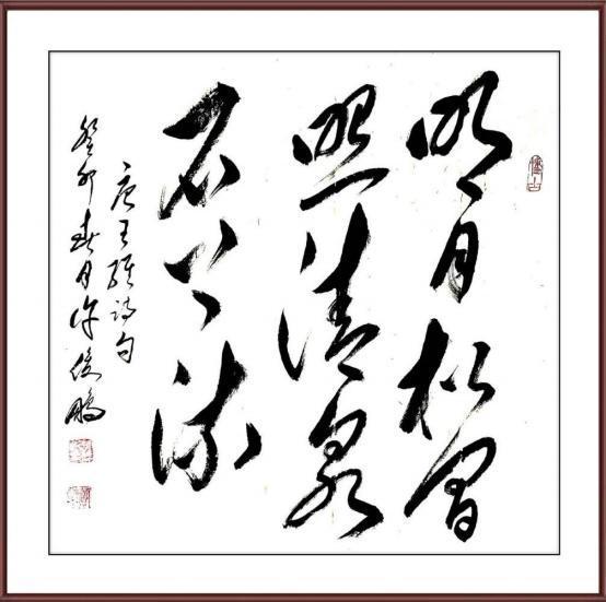 其书法作品一经出场,就有正大气象,笔里有墨,墨里有笔,以笔墨塑造“中国梦”,可以传达出大国崛起、文化复兴的伟岸力量。无论是笔法之精湛,还是情感之结晶,许俊鹏的书法创作与磨砺都走在时代的前列,没有书奴的唯唯嚅嚅,也没有书匠的拘泥不展,极有传承与创新的双重示范价值。无论是从审美的角度来看,还是从学术的层面来看,他的草书都可以写得恣意洒脱,经过刚柔相济的笔墨运行,写出了特别有文人书法的意象。既是晋韵宋意的一脉相传,也是抒情畅志的个性表达。这才是草书歌诀的正确打开方式,也是当代草书可以不负时代,以虬龙蜿蜒的姿态走向未来的精彩导向!