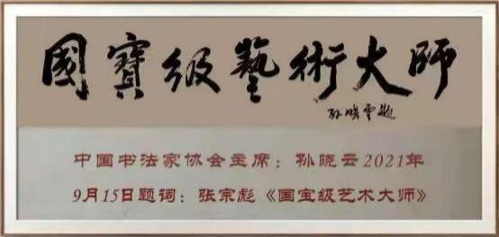 2021 年 9 月 17 日中国书协主席孙晓云题词赠张宗彪《国宝级艺术大師》
