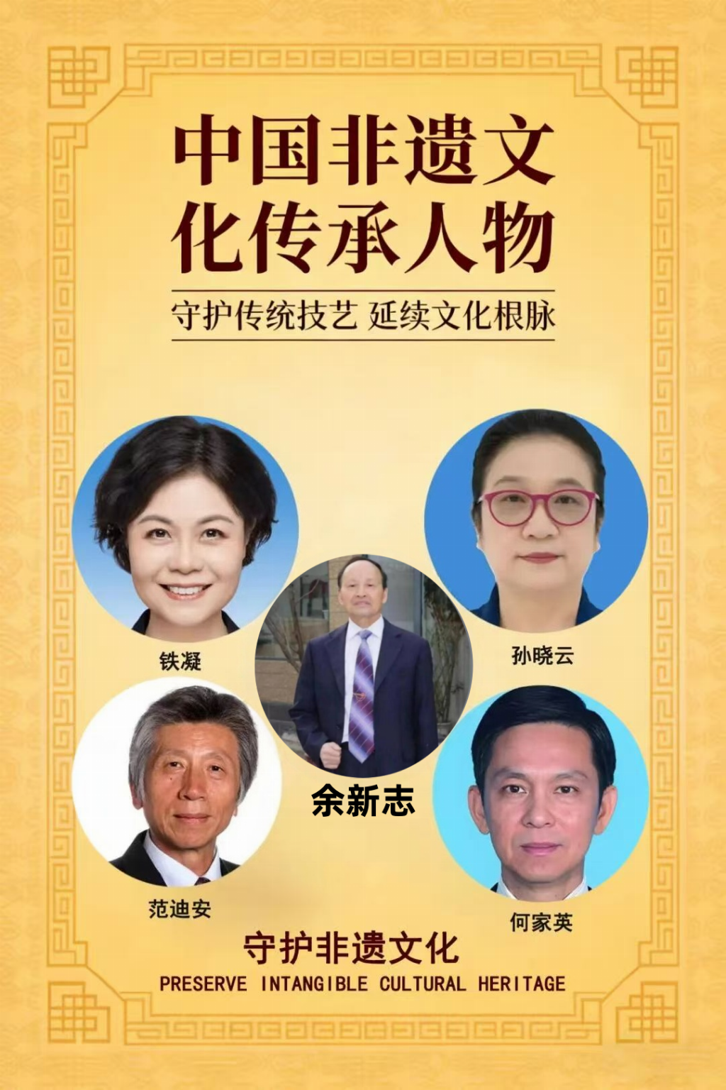 余新志 ,石竹斋书画院院长 , 中国沫若书画院终身院长 , 徐悲鸿画院艺术顾问 ,联合国教科文组织名誉主席 , 国际书画家协会常务主席 , 中国陶行 知教育基金会艺术总监 ,清华大学美术学院特聘教授 ,西南交通大学客座教授等百余职。 1989 年就在中国美术馆成功举办个人书画展 ,声震画坛 , 享誉海内外。 2007 年应邀参加外蒙古国“纪念成吉思汗成 立 800 周年”大型活动 ,被授予“成吉思汗”荣誉勋章;2010 年被世界华人华侨总会评为“世界华人精英优秀人物 ”和“世 界华人杰出艺术家 ”;2011 年被国家授予“共和国杰出书画 家 ”勋章;2014 年被授予“全国 I五 ·一 ’劳模 ”勋章;2015 年被评为“非物质文化遗产传承人物” ,授予“一代宗师” 荣誉称号。 2017 年在美国洛杉矶举办画展 ,受邀走进联合 国会议大厅参加高峰论坛会 ,受到布鲁斯·罗茨主席的亲切 接并合影留念。 2021 年余新志先生与张大千、林散之、李 苦禅、林凤眠、启功、李可染、 欧阳中石、黄永玉、沈鹏等 顶尖级艺术家被评为“艺术百年·新中国十大巅峰艺术家”。 余老先生几十年来,走遍大江南北,全身心投入竹画写生创 作 ,收集素材数千幅,终于在 2012 年创作完成了长 103 米、宽 1.2 米的百米长卷《百竹雄魂图——万竿竹魂铸春 秋》,创下“画竹种类最多、最美的百米长卷”世界纪录 , 传承千秋。 2016 年百米长卷又被载入《中国国史》 ,为世 人留下了不朽的竹画史料、宝贵财富 ,永载史册。 2024 年经国家艺术档案馆严格审评授予余新志为《中国四大国粹传 承人》,并颁发荣誉证书。2024 年 7 月授予《中国书画百 年巨匠传人》颁发荣誉锦旗、荣誉证书。从 1993 年以来 , 中国邮政总局先后为余新志先生出版珍藏纪念邮票三十余 套 ,全球发行 ,传播文化。并先后出版发行余新志个人专著 画集数百套。上百幅作品被国家博物馆、中国美术馆等国内 外几百家艺术藏馆永久收藏陈列。其个人传略被载入《中国 人物年鉴》《中国国史》《中国历代美术家名人大辞典》《世 界人物辞海》等百余部辞书。余新志先生倾尽毕生心血,为 弘扬中华民族优秀的传统文化作出了杰出贡献。